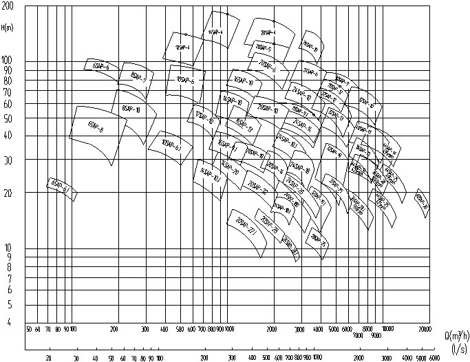 ● 性能范围:流量:72--9900m³/h 扬程:6.8—104m